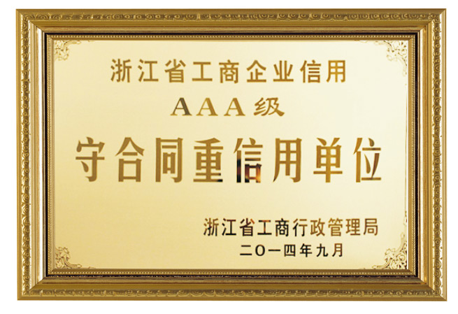 浙江省工商企業(yè)信仰AAA級(jí)守合同重信用單位